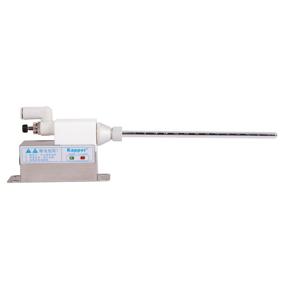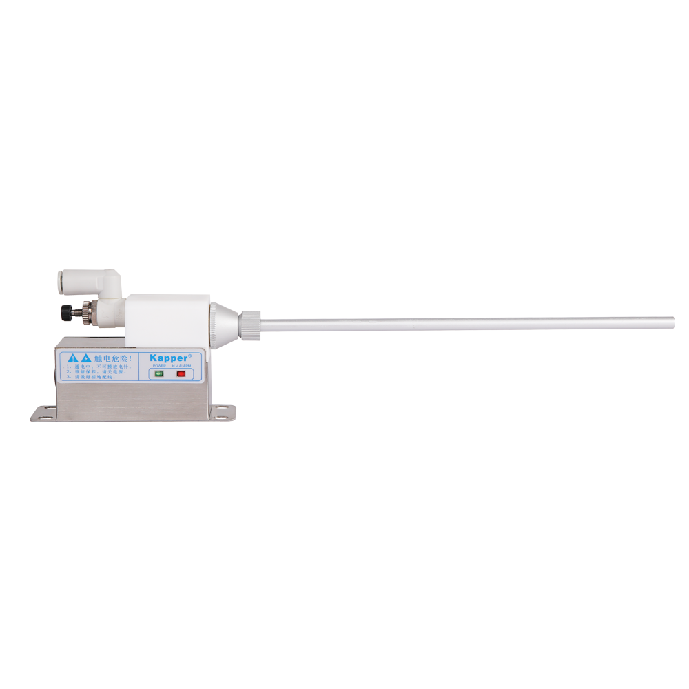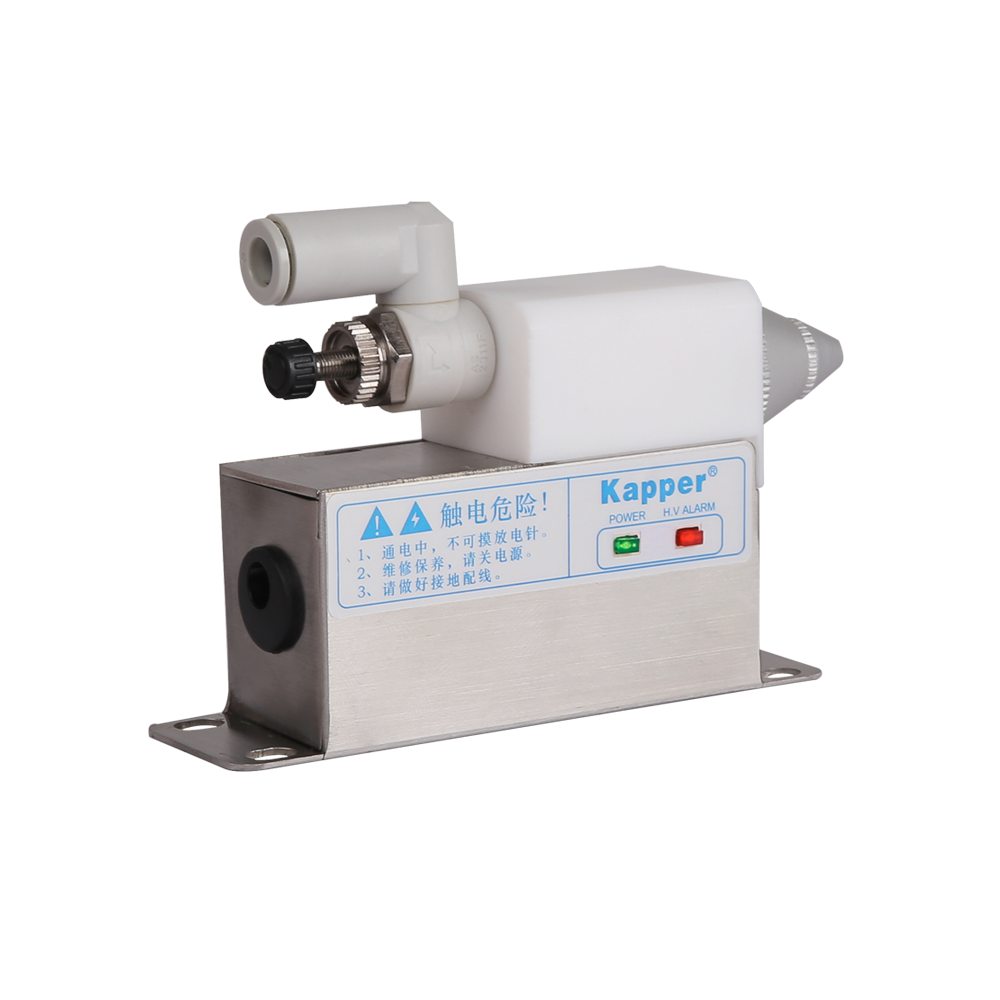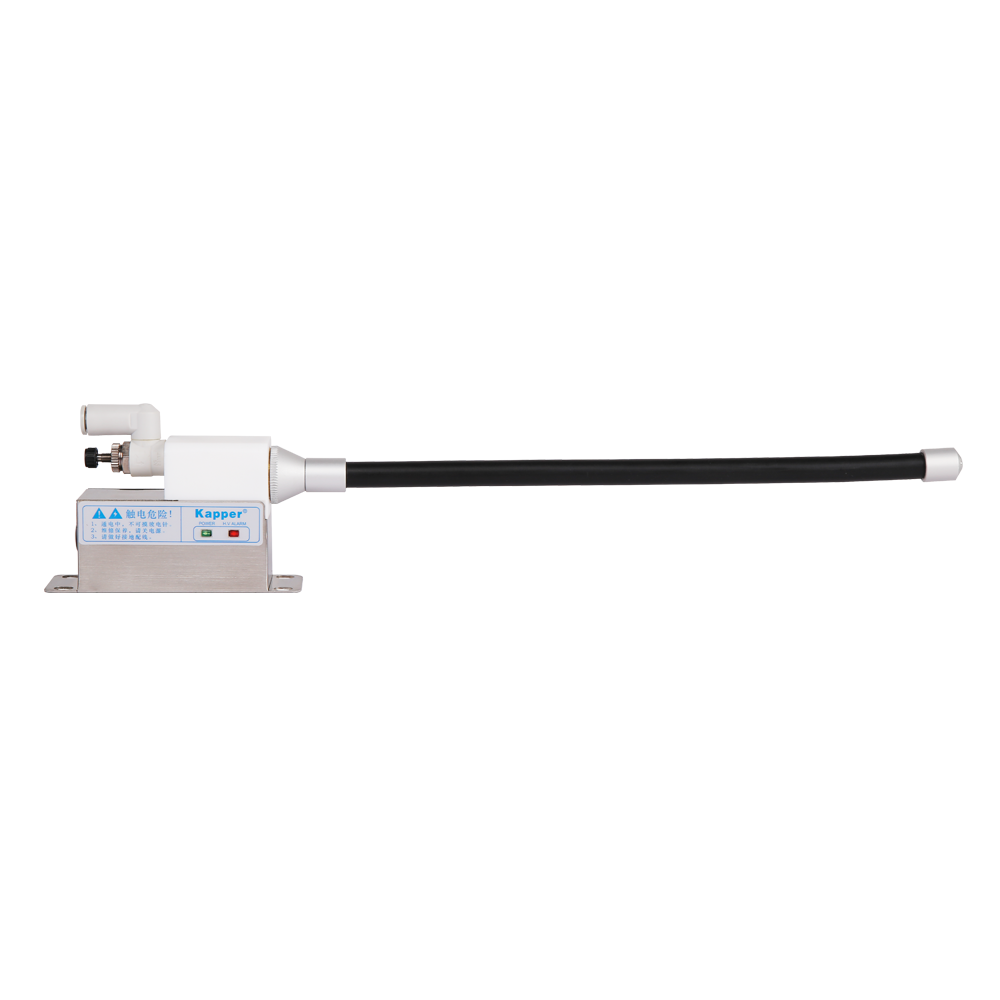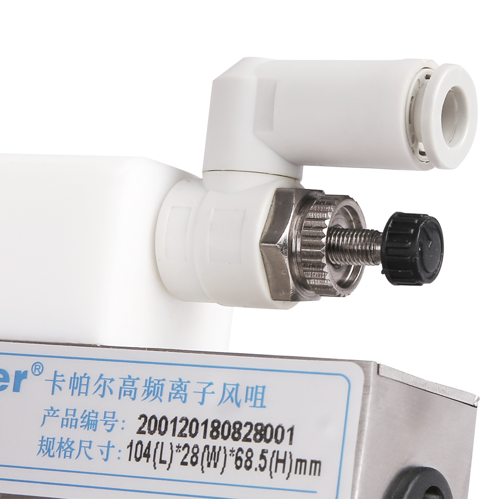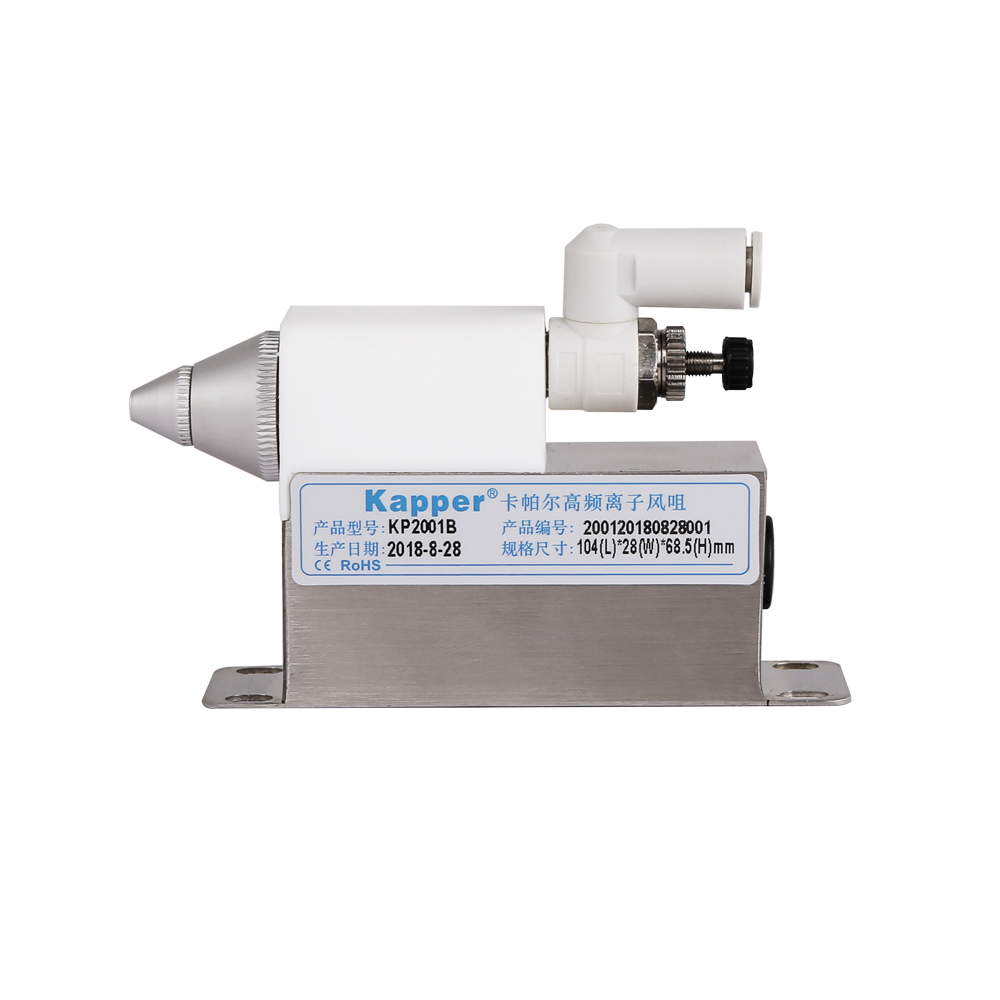 KP2001B高頻離子風(fēng)咀是卡帕爾公司研制生產(chǎn)的一種固定式消除物體表面靜電及灰塵的除靜電裝置。需要配壓縮空氣才可使用。