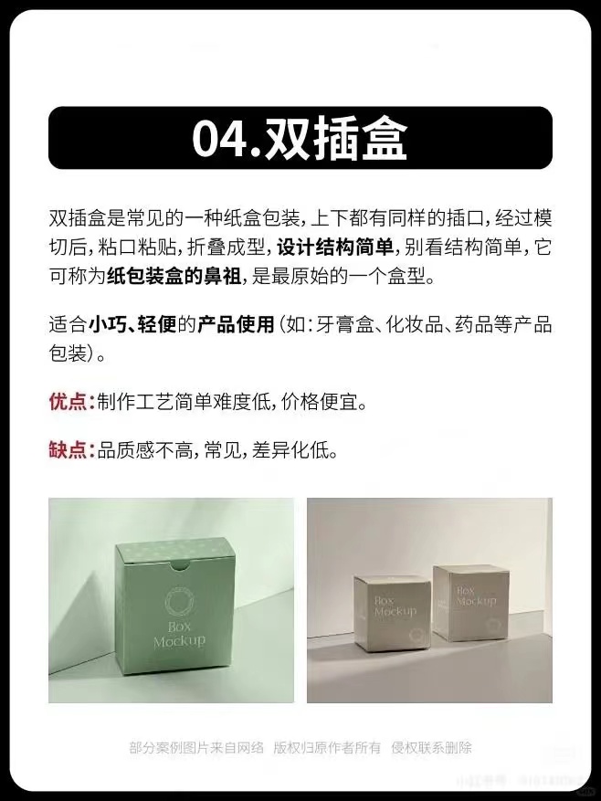 不同的包裝盒型不僅能夠提高產(chǎn)品的吸引力,還能在一定程度上提升品牌的知名度和消費(fèi)者的購(gòu)買欲望。